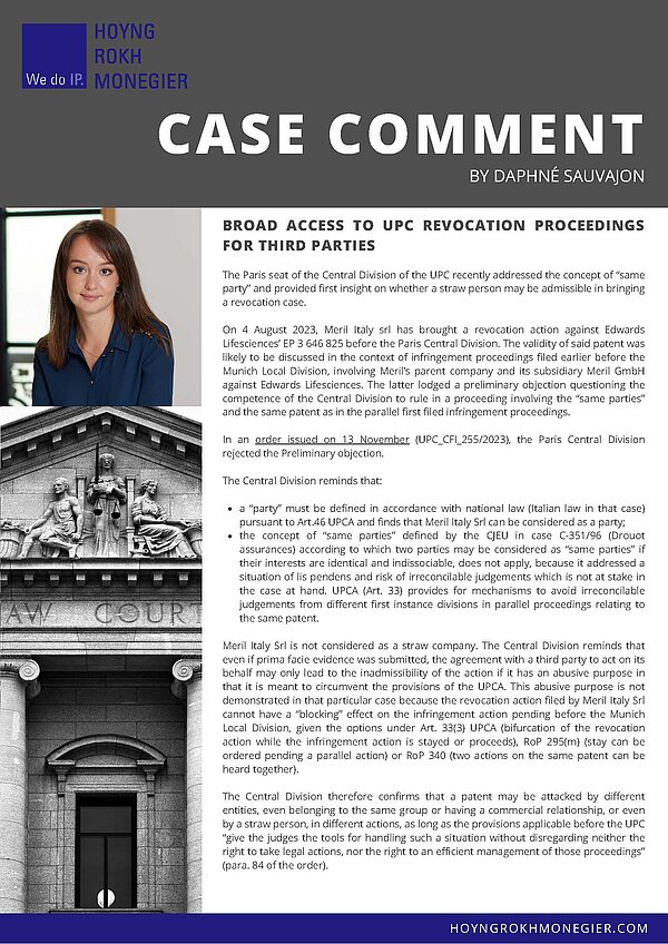 The Paris seat of the Central Division of the UPC recently addressed the concept of “same party” and provided first insight on whether a straw person may be admissible in bringing a revocation case.