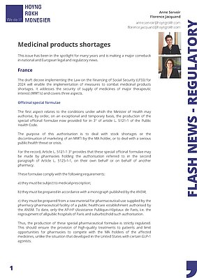 In France, the draft decree implementing the Law on the Financing of Social Security (LFSS) for 2024 will enable the implementation of measures to combat medicinal products shortages. It addresses the security of supply of medicines of major therapeutic interest (MMTIs) and covers three aspects.