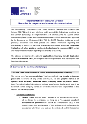 The new ECGT Directive (Directive (EU) 2024/825) introduces significant changes to consumer protection law aimed at combating greenwashing and strengthening sustainability claims across the European market.