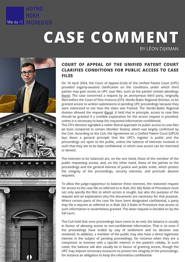 Case Comment – UPC Conditions for Public Access to Case Files – Léon Dijkman